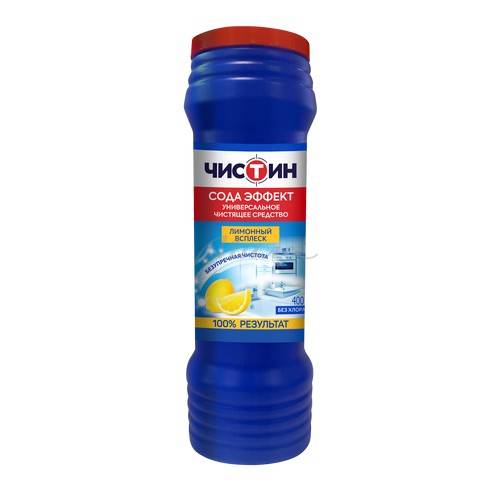 Содержание хлора: 0%; Экотовар: нет; Модель товара: Лимонный всплеск; Универсальное чистящее средство Чистин Лимонный всплеск порошок 400 г.